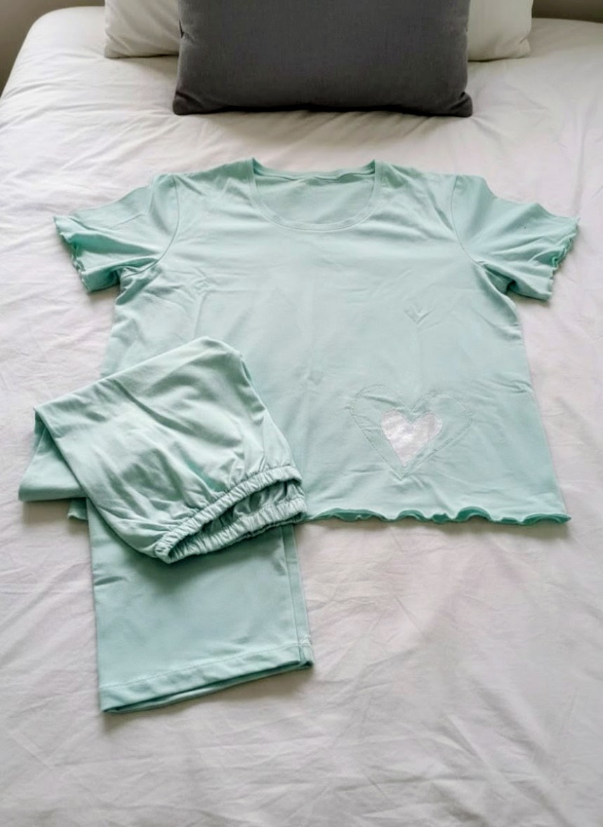 Kalp işlemeli kısa kol Pijama takımı 🥰 🥻 Sipariş üzerine dikilmektedir. ✅️ Farklı model desenler dikilebilir.